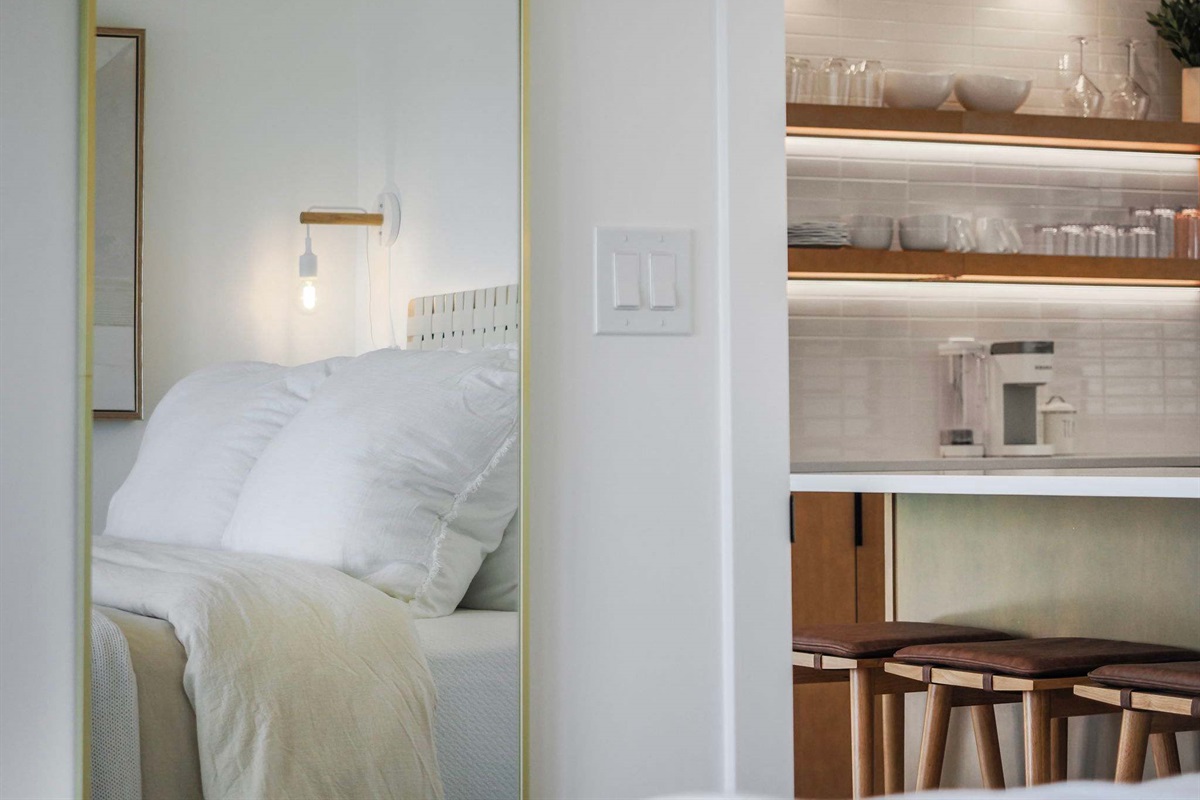 Thoughtful details include Grown Alchemist bath amenities and organic kitchen essentials, including basic cooking oils and seasonings. Guests also enjoy access to the resort’s shared amenities, including a beach patio, swim dock, boat dock, kayaks, paddle-boards, and a lakefront viewing patio, all set within beautifully landscaped lakefront grounds.